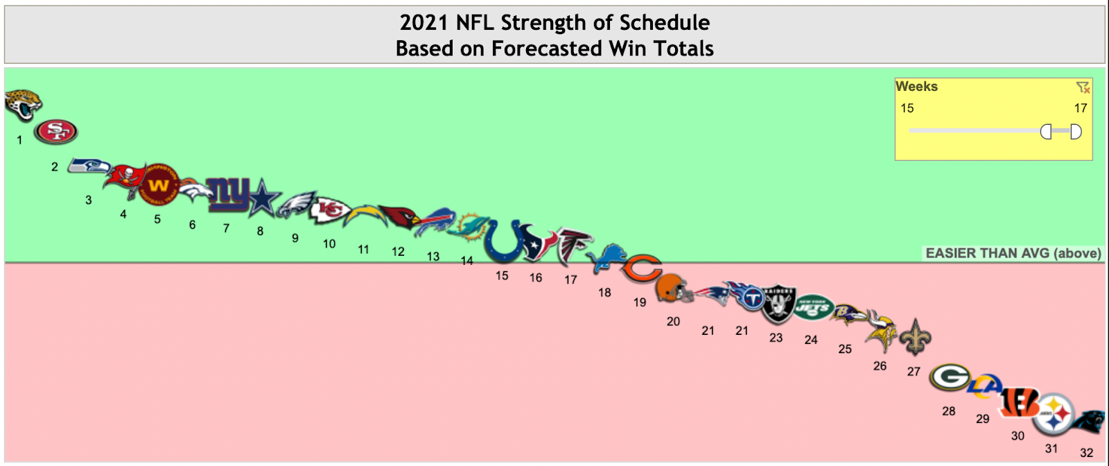 Full player and game projections Winning Fantasy advice analysis and DFS lineups Advanced rankings from 10000 simulations. Dallas was not being drafted in the top 12 at the position and New England was 9th. The chart is looking at win totals meaning the three teams the Jaguars play in Weeks 1517 have the lowest projected wins for 2021.